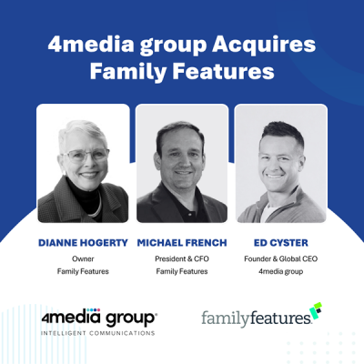 “Family Features has built a distinctive 51-year legacy as one of the industry’s most trusted content partners,” said Ed Cyster, founder and Global CEO of 4media group. “By welcoming Family Features into the 4media group family, we can build on that legacy while also expanding the reach and impact of our clients’ stories. Together, we’ll aim to redefine how earned, owned and paid content work in harmony to deliver impact, trust and measurable business growth for every client.”