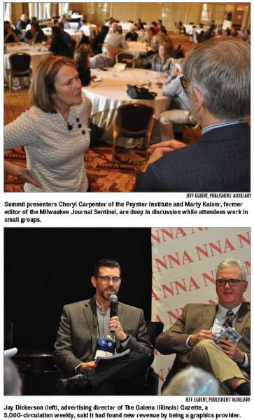 The summit broke up into roundtables that reported back to the whole group with their best ideas. Several dealt with local sports, an area where transient competitors often poach on local papers’ territory.