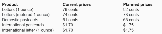 The U.S. Postal Service today filed notice with the Postal Regulatory Commission (PRC) of mailing services price changes to take effect on July 12. The new rates include a 4-cent increase in the price of a First-Class Mail Forever stamp from 78 cents to 82 cents.